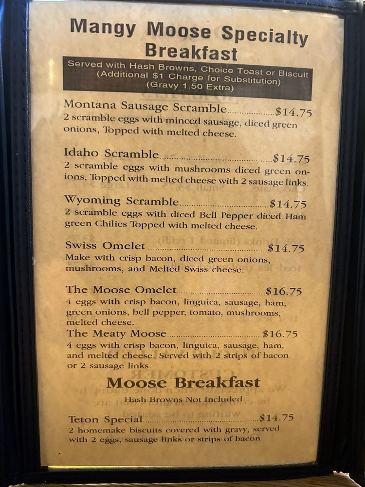 Mangy Moose Cafe Menu (Update 2025)